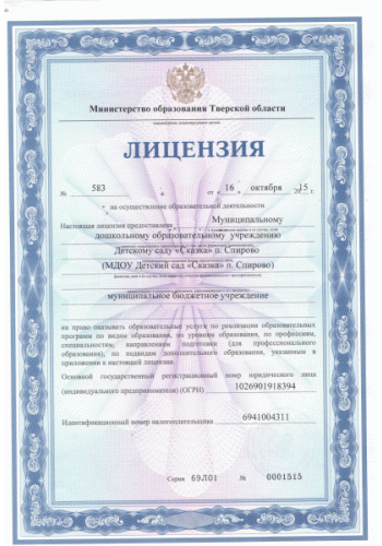 Образовательная программа дошкольного образования МДОУ Детского сада "Сказка" пгт Спирово