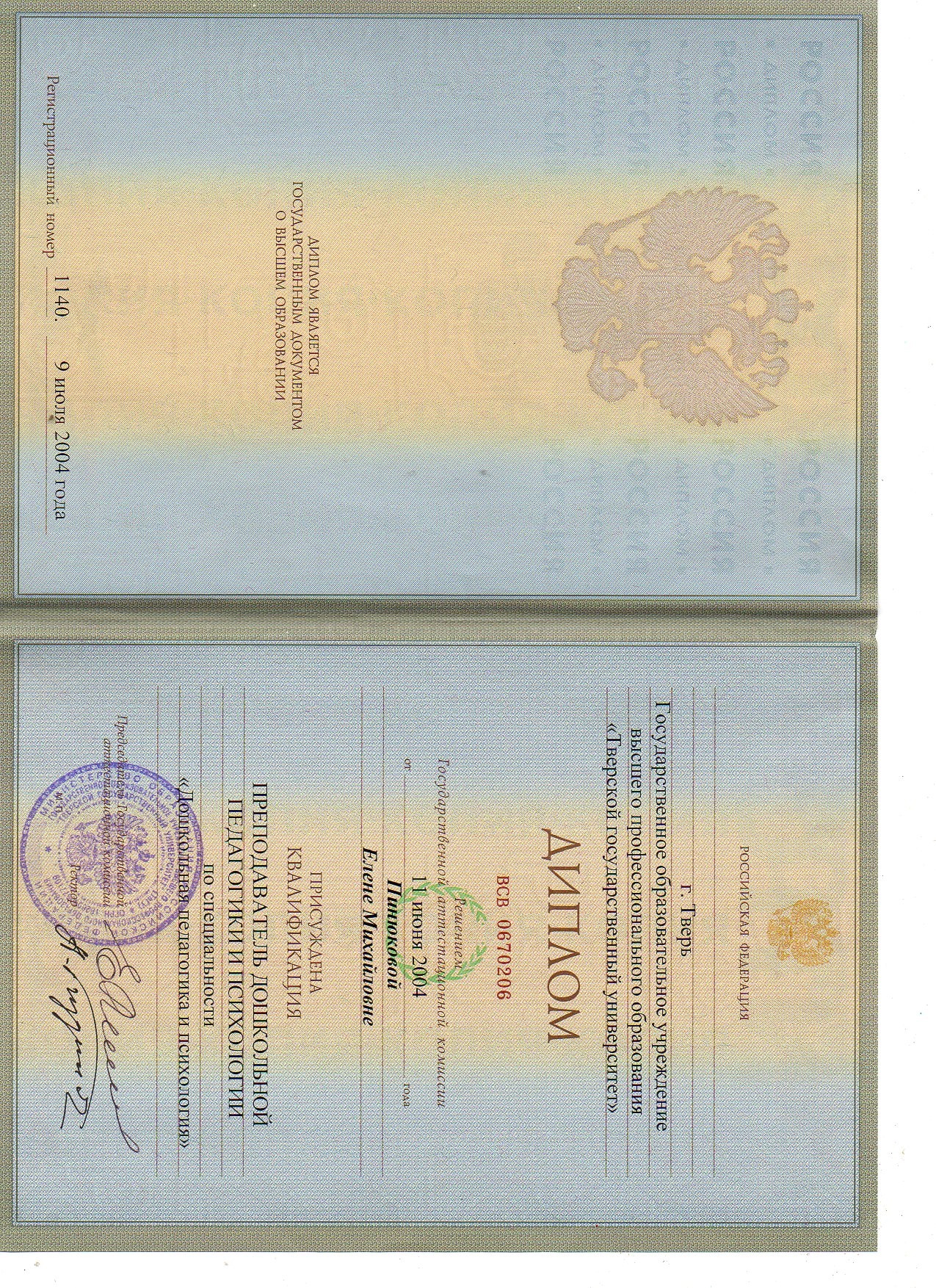 ФГБОУ ВО "Тверской государственный университет" по программе "Педагог-дефектолог", 2024г.
