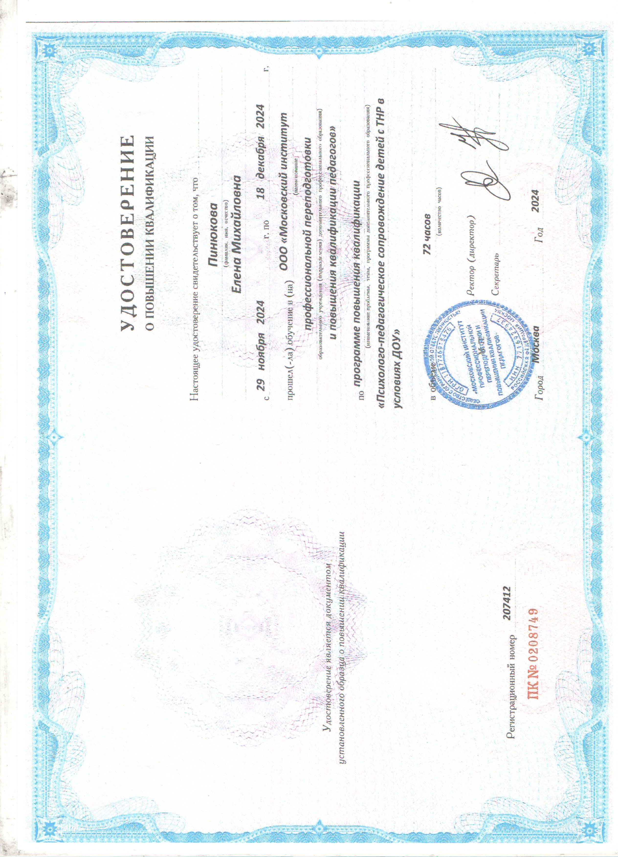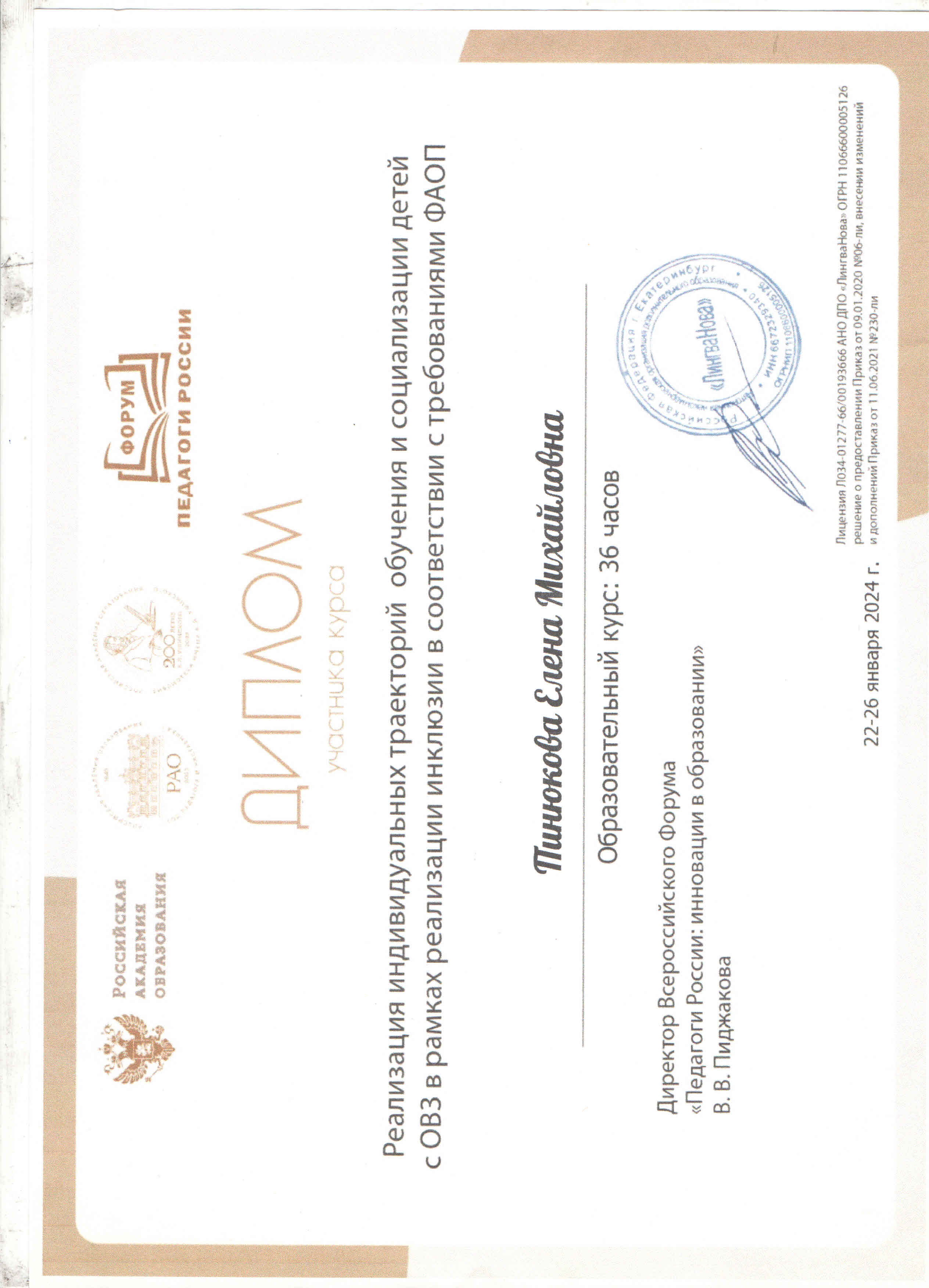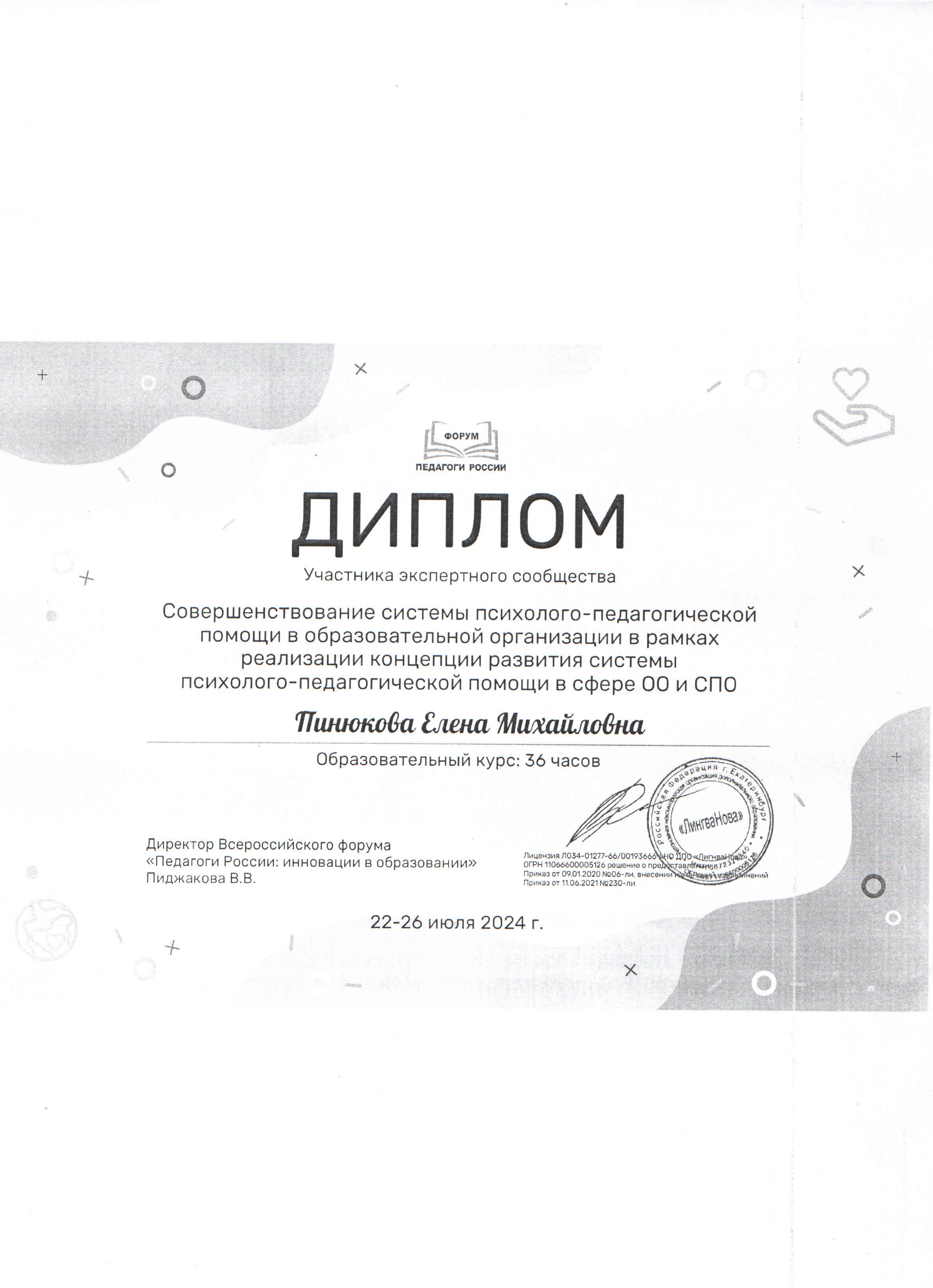 ПИНЮКОВА ЕЛЕНА МИХАЙЛОВНА
