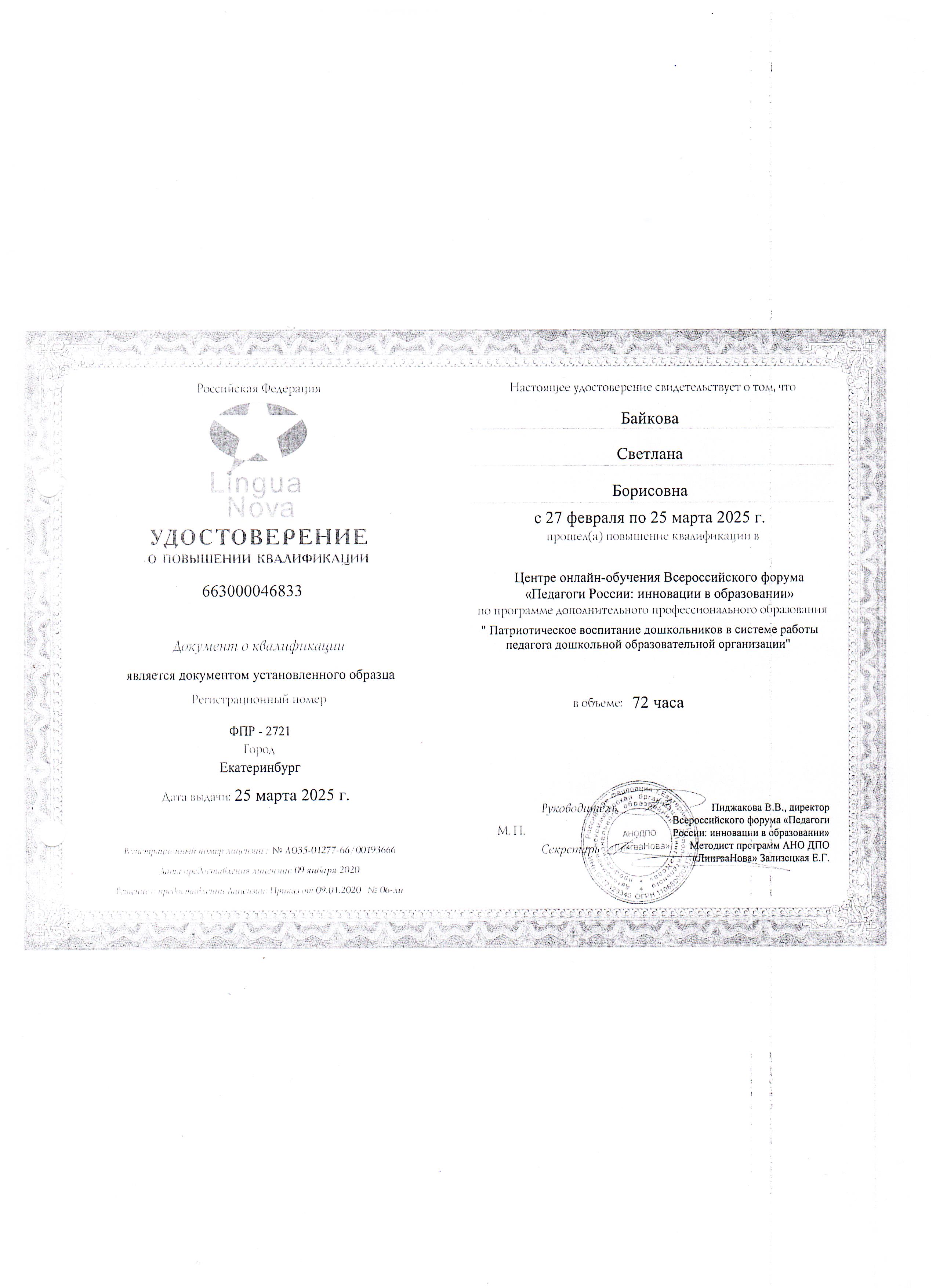 Свидетельство о занесении на Доску почета Спировского МО Тверской области, 2025 г.